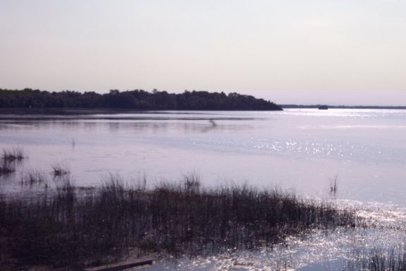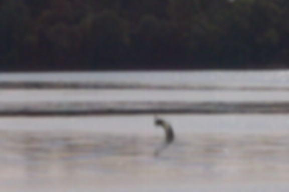 This is the image above with the "Gaussian Blur" removed. Sure enough, it is a piece of driftwood with an indentified shore bird sitting proud on its "head."