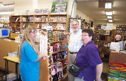 Eliska is a doll and everyone turned out to be wry and funny. We drank some beer, rode in Rick's bus to visit the world's largest and most disorganized bookstore, ate a lot of munchies, and goofed on our chauffeur(s). Since Ed arrived late, we made him guess who we all were, especially hard since we introduced Anne as Eliska.
